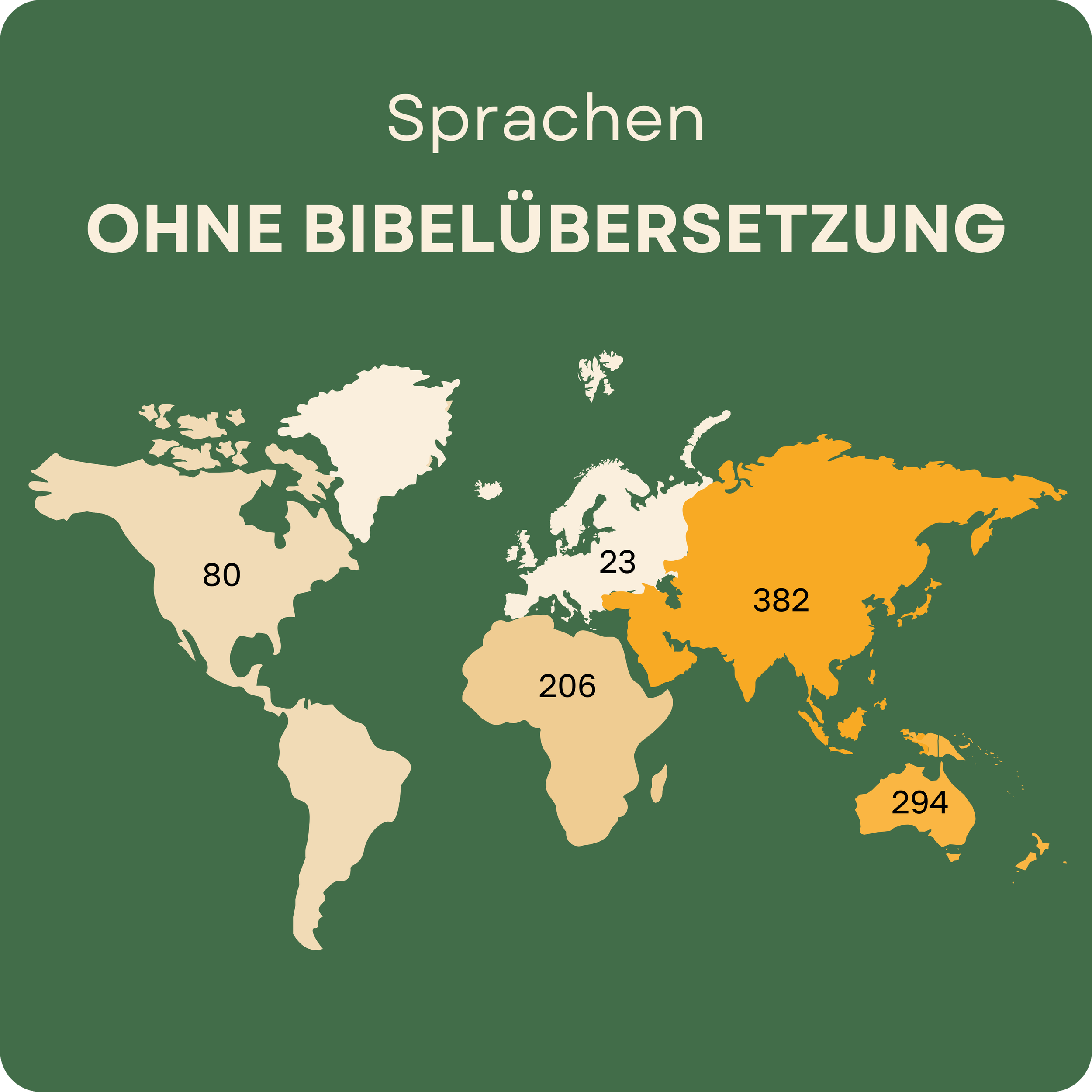Gleichzeitig erlebt Afrika ein rapides Wachstum seiner christlichen Bevölkerung. Bis zum Jahr 2050 wird der Kontinent mehr als 1,2 Milliarden Christen beheimaten, was einen dramatischen Anstieg im Vergleich zu 400 Millionen im Jahr 2000 darstellt. Damit wird Afrika zur Region mit der weltweit größten Konzentration an Christen, was einen dringenden Bedarf an Bibelübersetzungen in den Herzenssprachen dieser Gläubigen erzeugt.