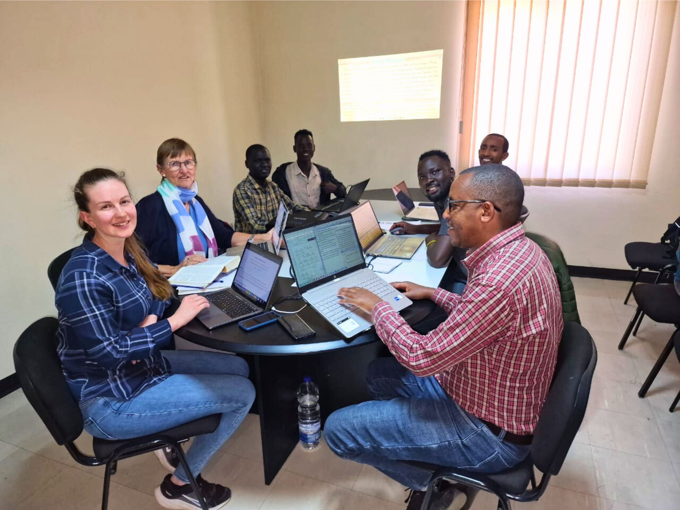 Next, I joined Hanna and Lukas, a German couple who support the Koorete translation team. Together, we traveled to Amaaro in southern Ethiopia, where the team has already translated the New Testament and is now working on the translation of the Old Testament. We helped improve the first draft of the book of Jeremiah, which had been produced using AI. While the AI draft was a great start, we needed to fix some mistakes. An interesting aspect of Koorete is its focus marker, "ko," which can be added to any word in a sentence to emphasise it. This makes it very easy to alert readers to the most important aspect of a sentence.